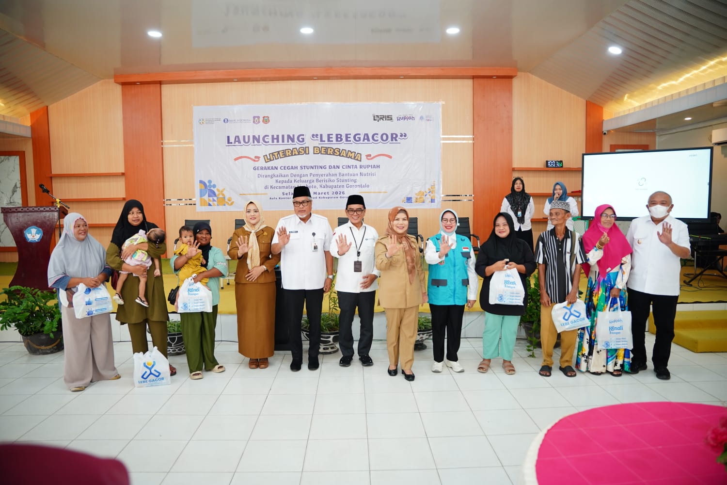 Gorontalo — Kantor Perwakilan Bank Indonesia Provinsi Gorontalo bersama BKKBN Provinsi Gorontalo, Pemerintah Provinsi Gorontalo dan Pemerintah Kabupaten Gorontalo meluncurkan program Literasi Bersama – Gerakan Cegah Stunting dan Cinta Rupiah (LEBEGACOR) sebagai upaya mendukung peningkatan kualitas keluarga dan generasi masa depan.