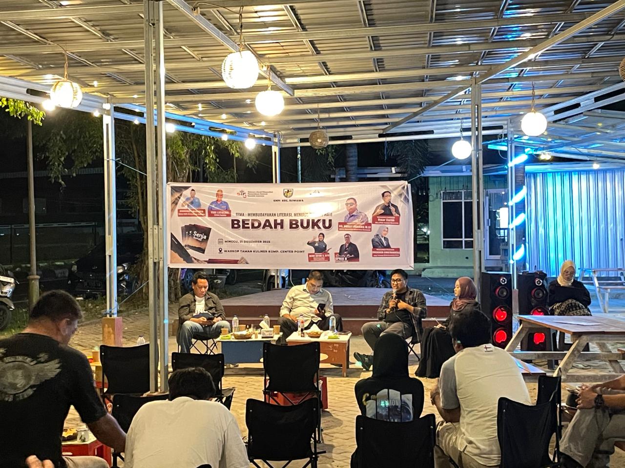 Kegiatan itu berlangsung di Warkop Taman Kuliner, Center Point Kabupaten Bone Bolango pada Kamis (25/12/2025). Bedah buku ini sebagai refleksi akhir tahun 2025, memotivasi anak muda untuk semangat berkarya.