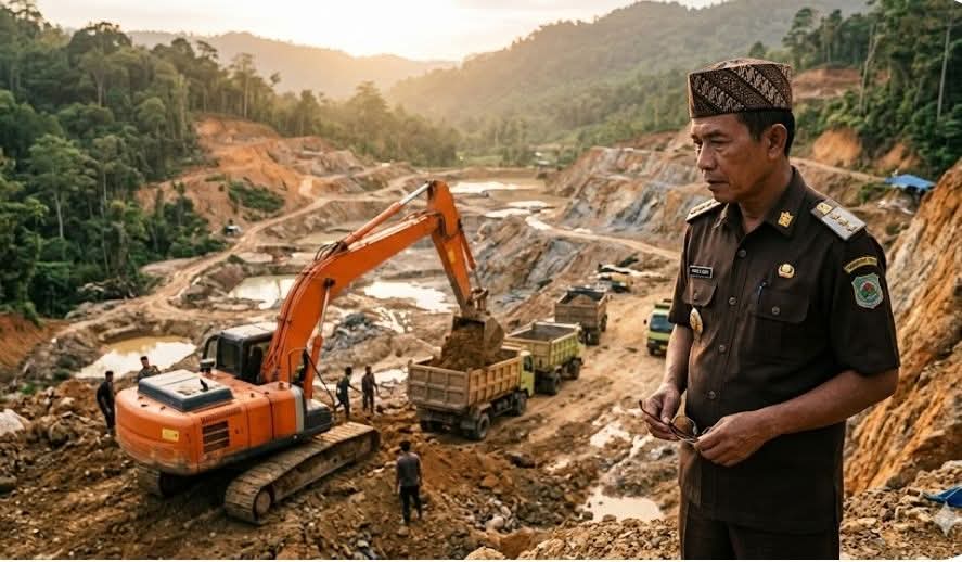 Oknum tersebut diduga sebagai pihak yang menguasai atau pemilik lokasi tambang ilegal tempat Ekskavator beroperasi.
