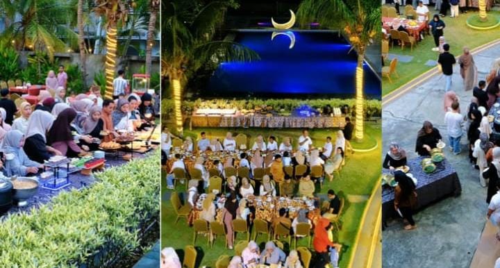 Sajian “KURMA – Kuliner Ramadan” yang telah berjalan sejak awal Ramadan semakin populer karena variasi menu yang melimpah, takjil tradisional yang lengkap, serta pilihan hidangan utama yang diracik khusus oleh tim culinary hotel. Suasana tepi kolam yang dihiasi pencahayaan lembut saat senja menjadikan pengalaman berbuka terasa lebih istimewa dan berbeda dibandingkan tahun-tahun sebelumnya.